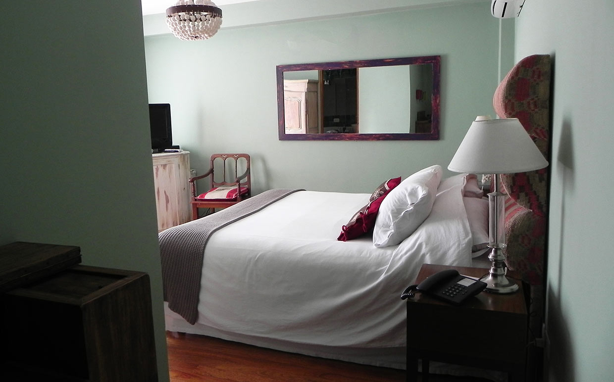 This 25 square meters room is located on the first floor with magnificent views of the hills and the city. It’s equipped with a king size bed or two twins.